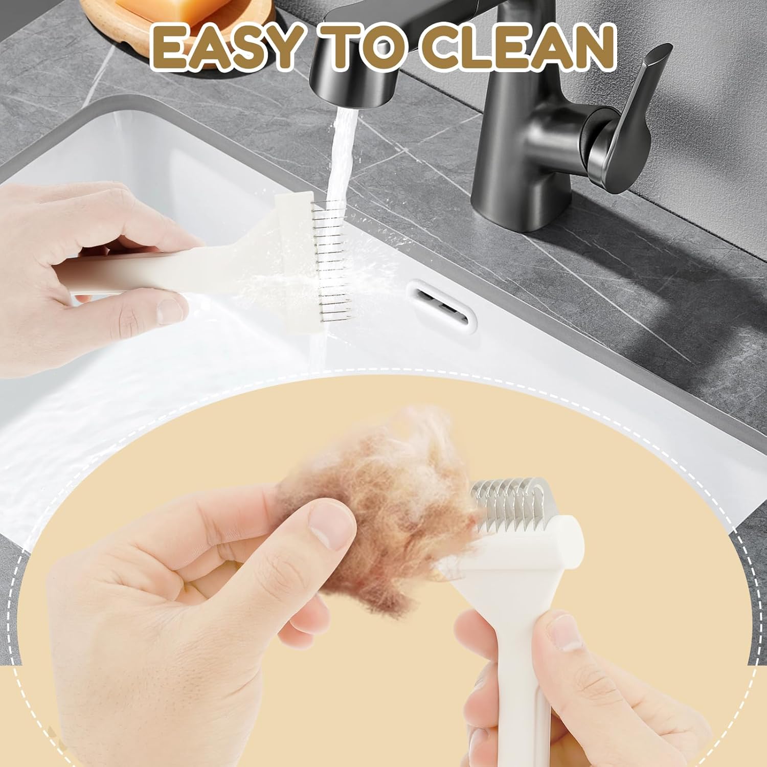 Easy to Clean: If there is lots of hair on the rake teeth of the detangling comb, you can clean it with your other hand in a short period of time. After repeated use, the blades will remain hair and stains, which can be washed, dried and stored. Keeping the cat and dog grooming brush clean is important for grooming results