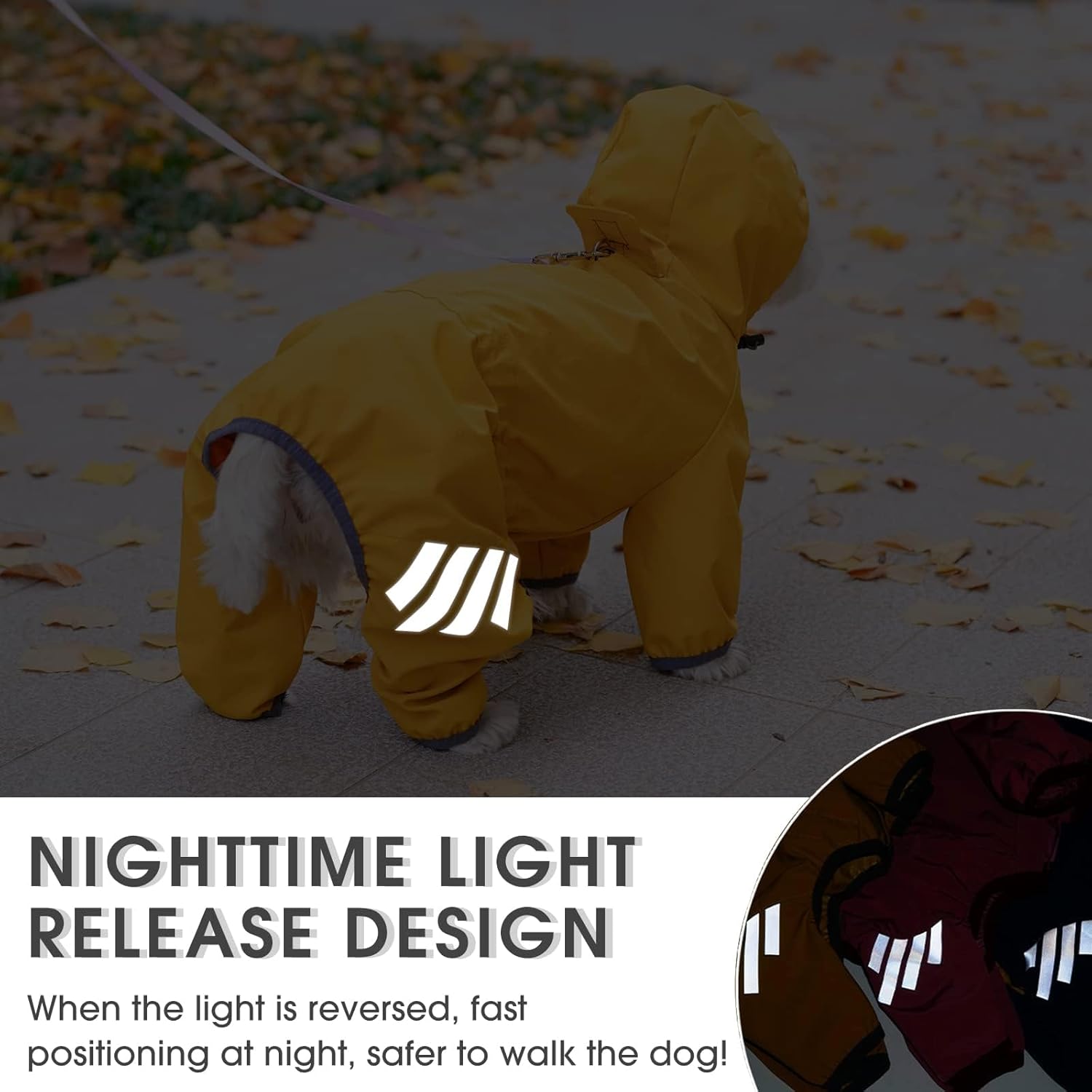 🥰【Reflective Design】This dog raincoat comes with reflective strips of varying lengths in the back leg position, with a sense of rhythm, making the raincoat more fashionable, go out without fear of darkness, increase the security of your dog’s actions in the dark, quickly locate your dog, prevent accidents, and easily walk your dog.