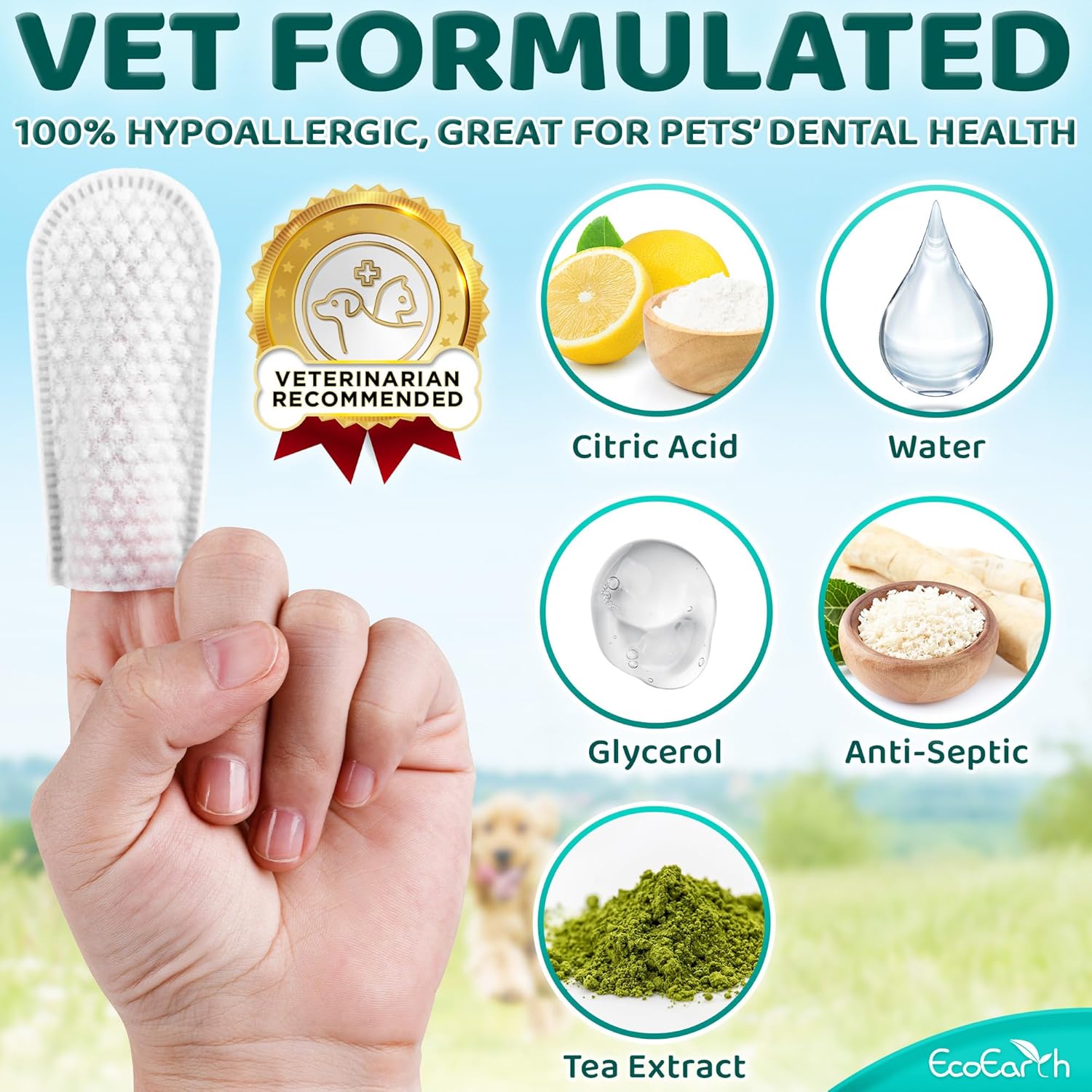 5 reviews for EcoEarth Premium Teeth Cleaning Wipes for Dogs & Cats – 50 Pcs – Pet Dental Care Finger Pads for Fresh Breath & Oral Hygiene – Embossed Pattern & Nano Plastic-Dotting to Remove Plaque & Tartar