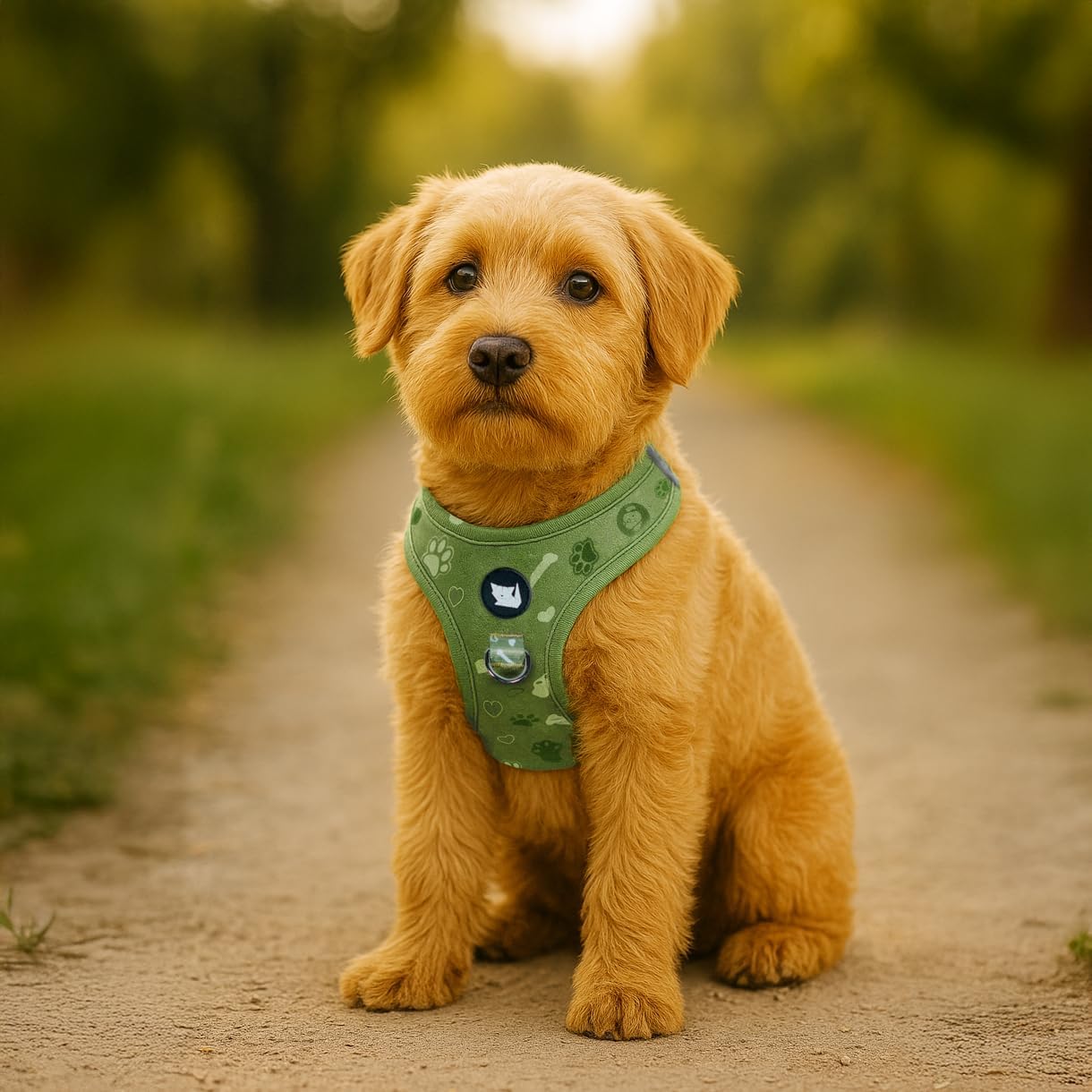 Premium Comfort: Cushioned neoprene fabric ensures a snug, cozy fit.Durable & Lightweight: Reinforced stitching and sturdy D-ring for secure walks.Playful Design: Adorable paw prints, bones, and heart patterns in neutral tones.Adjustable Fit: Easy-to-adjust straps for a perfect fit on medium breeds.No-Pull Feature: Dual-clip options to gently correct pulling behavior.