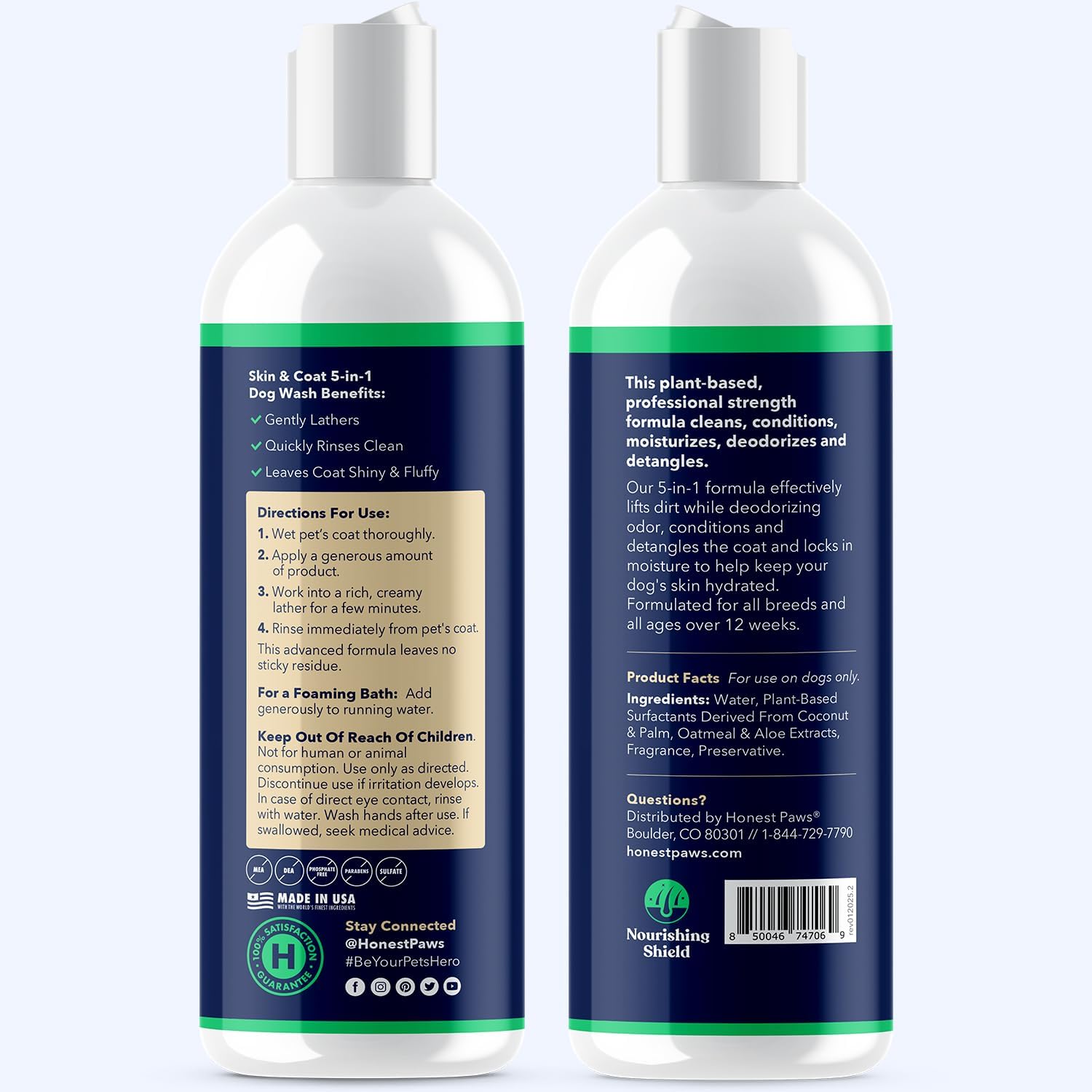 Five Benefits In One Wash – Cleans, deodorizes, conditions and detangles coat, moisturizes skin– Honest Paws Skin and Coat 5-in-1 Dog Wash is a one-step and easy to use premium dog wash. It is all you need to keep your dog’s fur and skin soft, moisturized and clean.