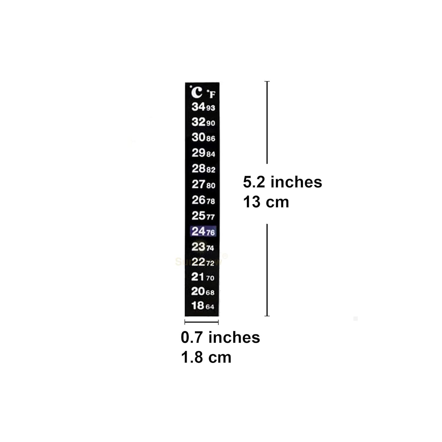 Simple, Practical, Easy To Read & Setup — Designed to be simple to read and attach (just peel and stick), the paper thin thermometer is 5.2” tall by 0.7” wide (13cm x 1.8cm). It is all black with temperature measurements written in white, easy enough to read for even your kids to tell. Using color indication, the water temperature that the thermometer reads will change to a blue color on the measurement scale. The measurement range is 64-93 degrees Fahrenheit or 18-34 degrees Celsius.