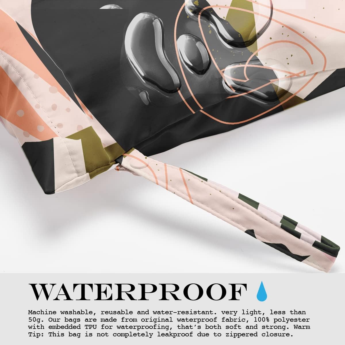 WATERPROOF – Machine washable, reusable and water-resistant. very light, less than 50g. Our bags are made from original waterproof fabric, 100% polyester with embedded TPU for waterproofing, that’s both soft and strong. Warm Tip: This bag is not completely leakproof due to zippered closure.